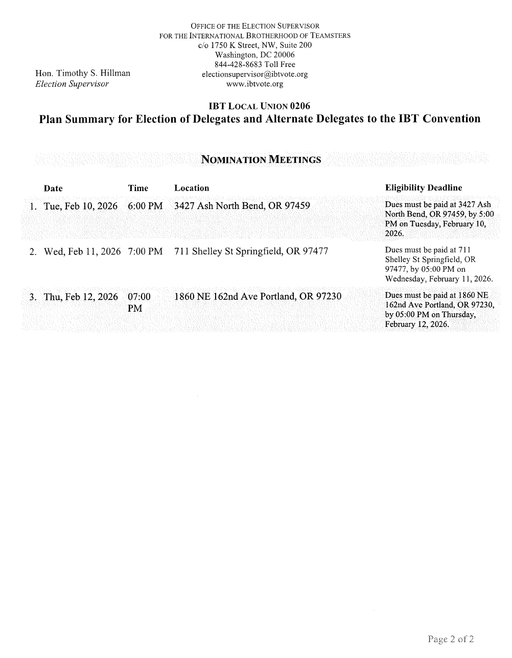 If you pay by mail or in person, please remember: your dues must be received in the Local 206 office by the close of business on the last business day of the month.