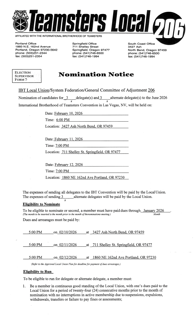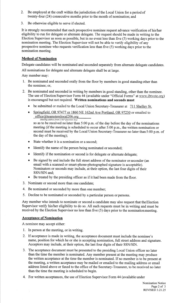 If you pay by mail or in person, please remember: your dues must be received in the Local 206 office by the close of business on the last business day of the month.